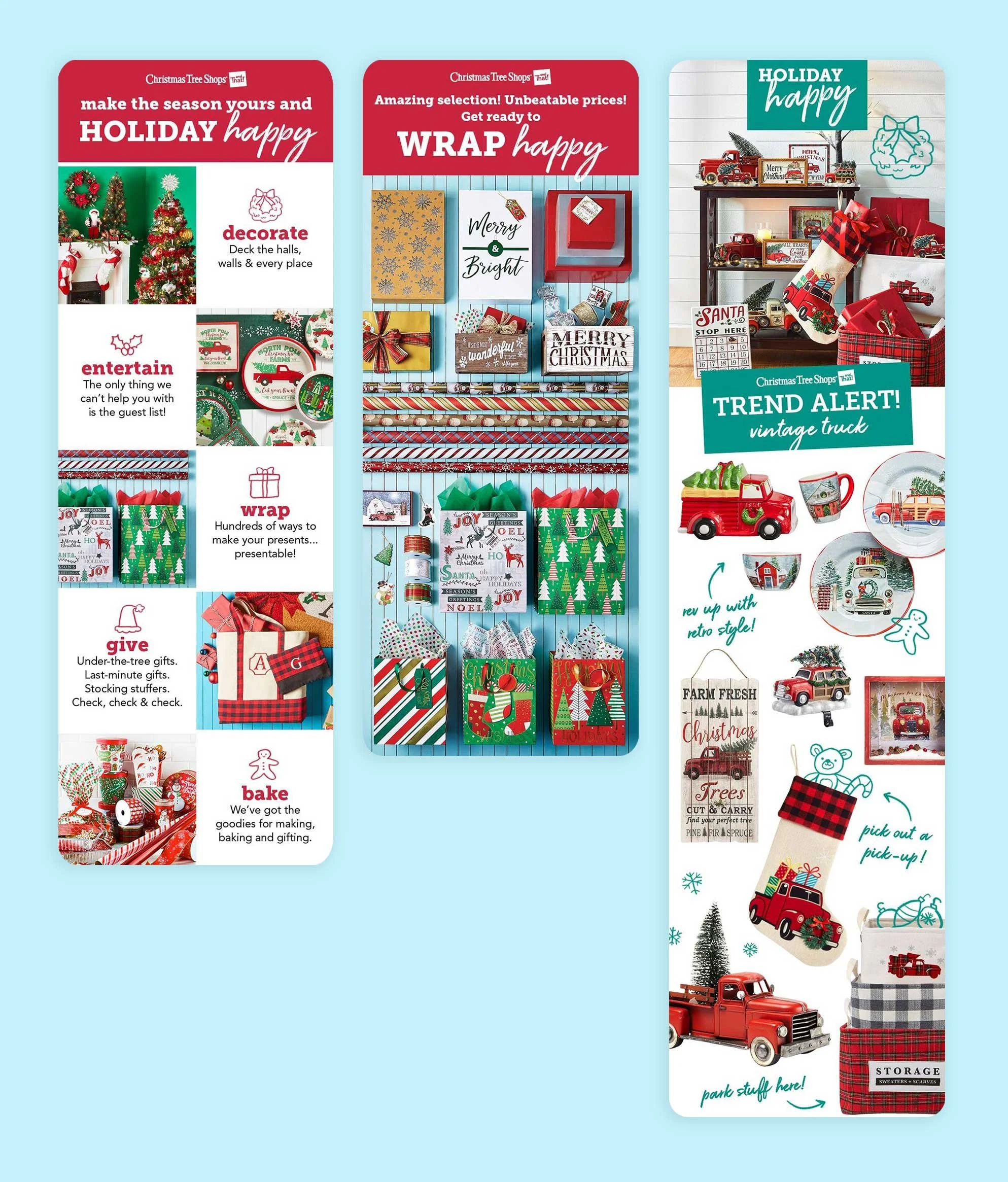 Concept, art direction and execution of the 2019 Holiday Campaign. Included multi-channel assets spanning November and December. This campaign laddered up to brand messaging of “Checkout Happy.” We wanted to convey to our customer that we have everything needed to create the holiday season of their dreams all while sticking to their budget. That’s Holiday Happy!