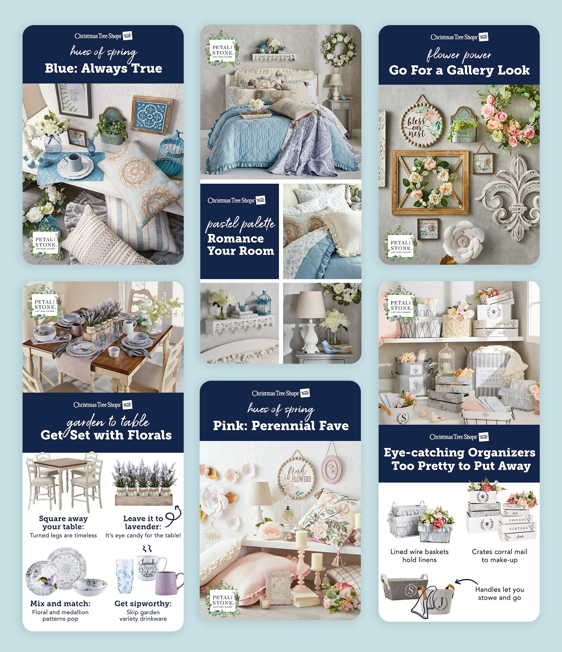 Concept, art direction and execution for the new collection launch. Included an 8-page circular, landing page, emails and strong social presence, which resulted in top performing pins, a 96% completion rate and over 6,000 average reach for all 3 Instagram stories. Photography focused on capturing soft textures, patterns, iconography and florals.